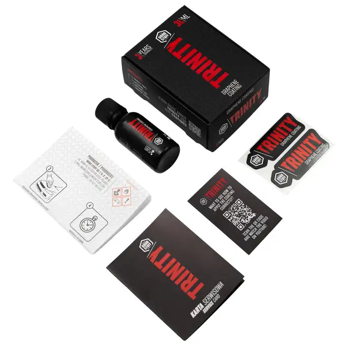 GOOD STUFF Trinity Graphene Coating to nowoczesna powłoka ochronna oparta na technologii grafenowej, przeznaczona do zabezpieczenia lakieru samochodowego. Zapewnia wysoki poziom ochrony, połysk oraz zwiększoną odporność na zabrudzenia i czynniki atmosferyczne.