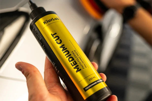 KiurLab Medium Cut / One Step - to zaawansowana pasta polerska typu One Step, zaprojektowana do szybkiego i skutecznego odświeżenia lakieru w jednym etapie. Łączy w sobie siłę cięcia past średniościernych z wysokim wykończeniem typowym dla past finiszowych, dzięki czemu pozwala osiągnąć wysoki połysk oraz skuteczne usunięcie rys za jednym przejazdem.